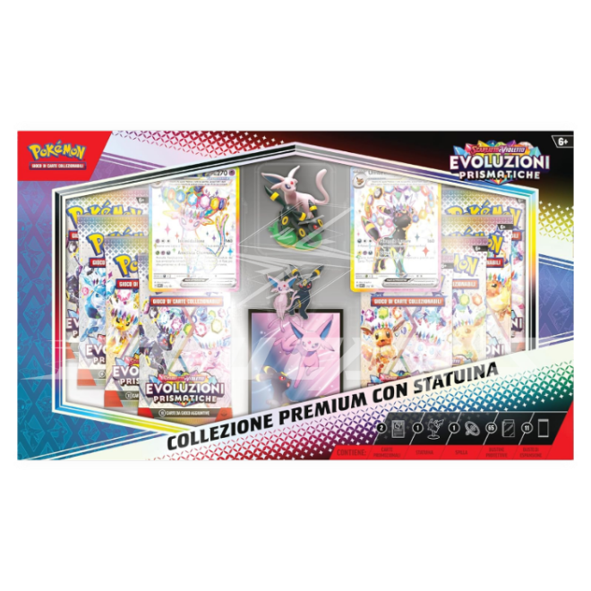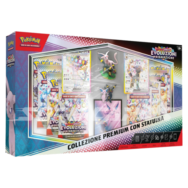 Unisciti al potere delle Evoluzioni Prismatiche con questa collezione Pokémon in 🇮🇹 lingua italiana, perfetta per i collezionisti più esigenti e i fan del Pokémon TCG.