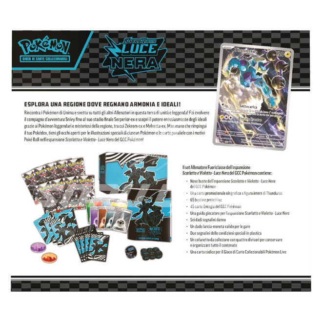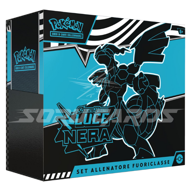 Scopri il Set Allenatore Fuoriclasse Luce Nera di Pokémon Scarlatto e Violetto, in lingua italiana 🇮🇹, perfetto per collezionisti e giocatori Pokémon TCG.